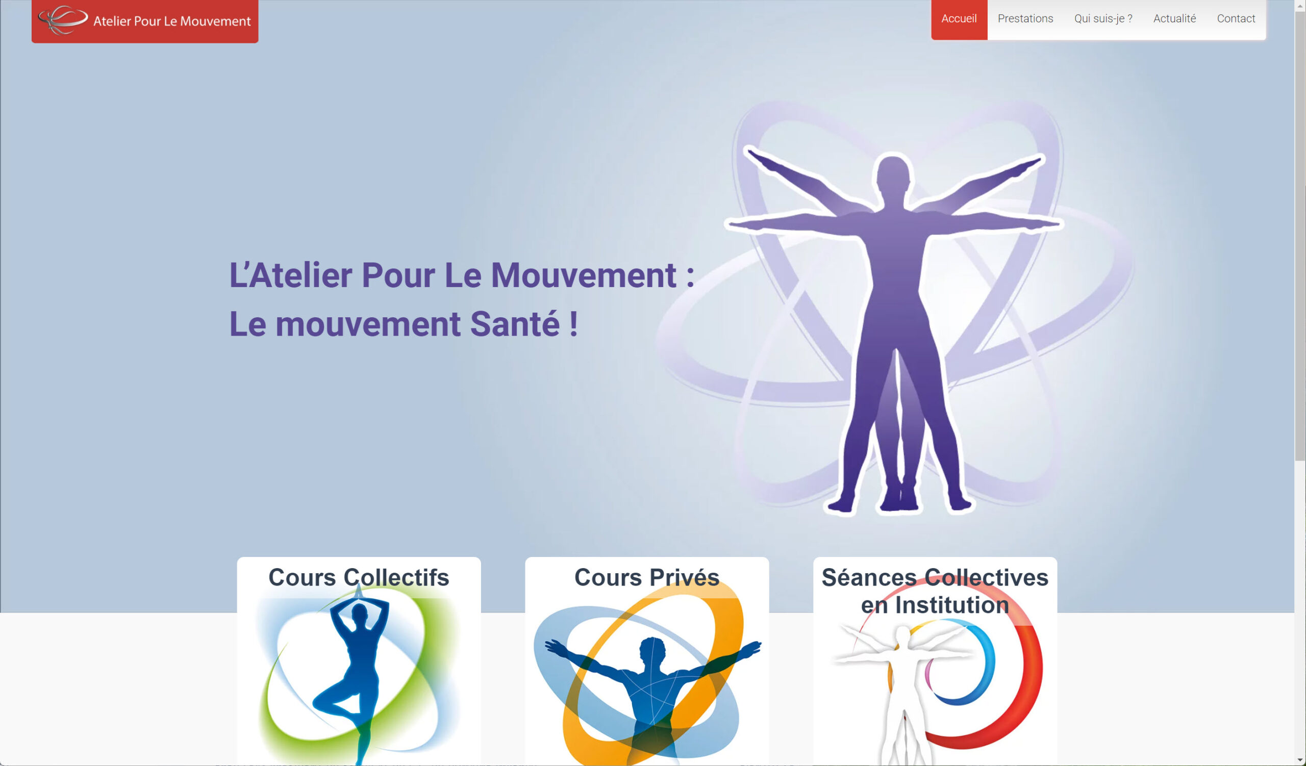 Création du site et du template. Installation d’un système de réservation d’événement pour les cours. Voir le site.