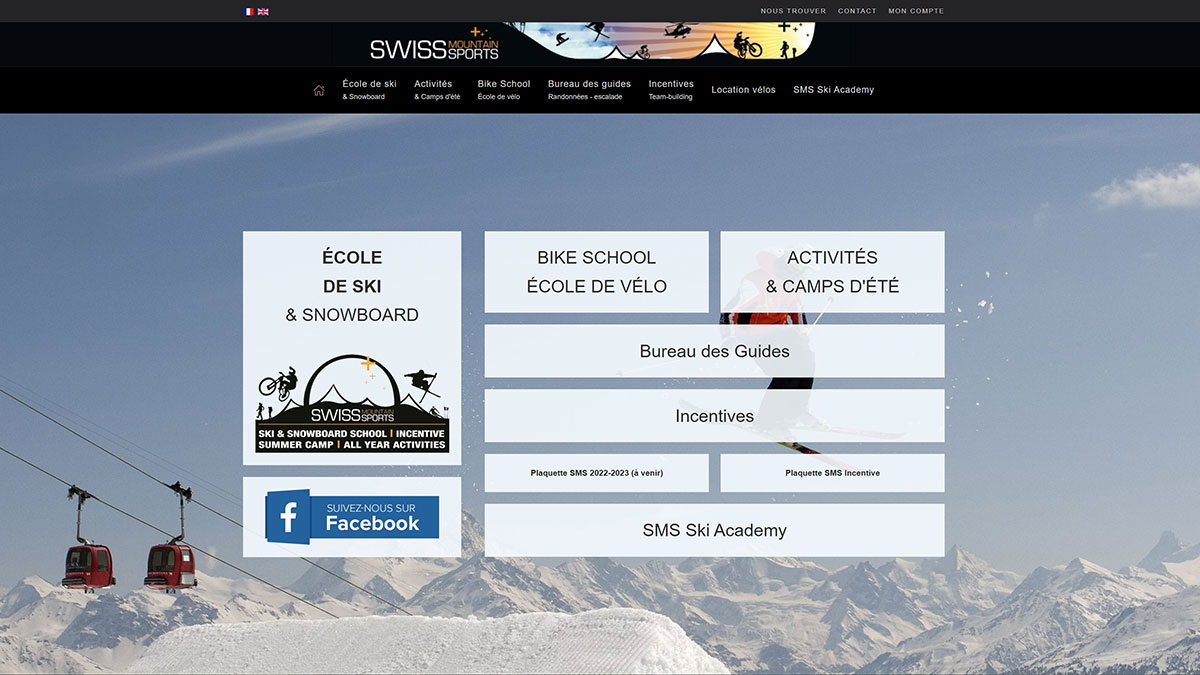 Création du site et du template. Installation d’un système de réservation d’événements. Site en 2 langues. Voir le site.