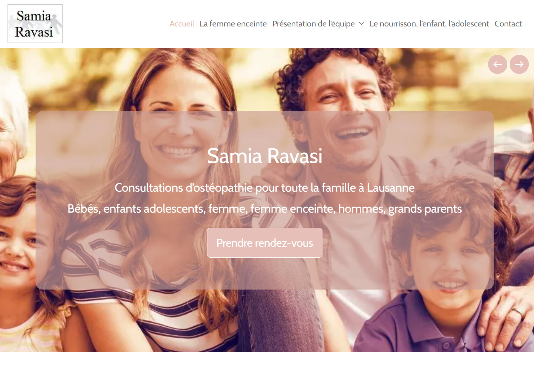 Site de Samia Ravazi, ostéopathe – Reprise et refonte complète du site et template – Voir le site.